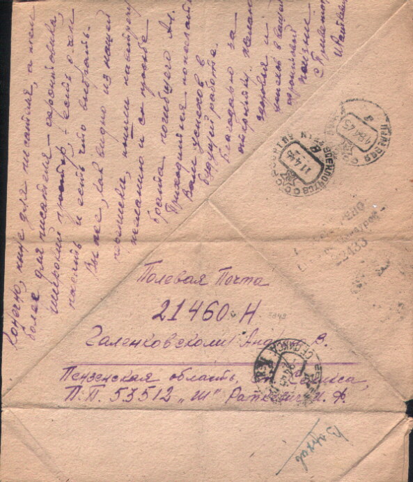Natürlich findet ein Schriftsteller und besonders ein Frontschriftsteller heute ein breites Spektrum von Themen - es gibt vieles worüber man schreiben kann und man kann etwas auswählen. Sie aber, man sieht das aus unserem Briefwechsel, sind dem Wunsch und der Bitte des Bruders des gefallenen Al. entgegengekommen. Ich wünsche Ihnen Erfolg in der zukünftigen Arbeit. Ich bedanke mich für die Karte. Ich wünsche Gesundheit und Erfolge in Ihrem Frontleben.